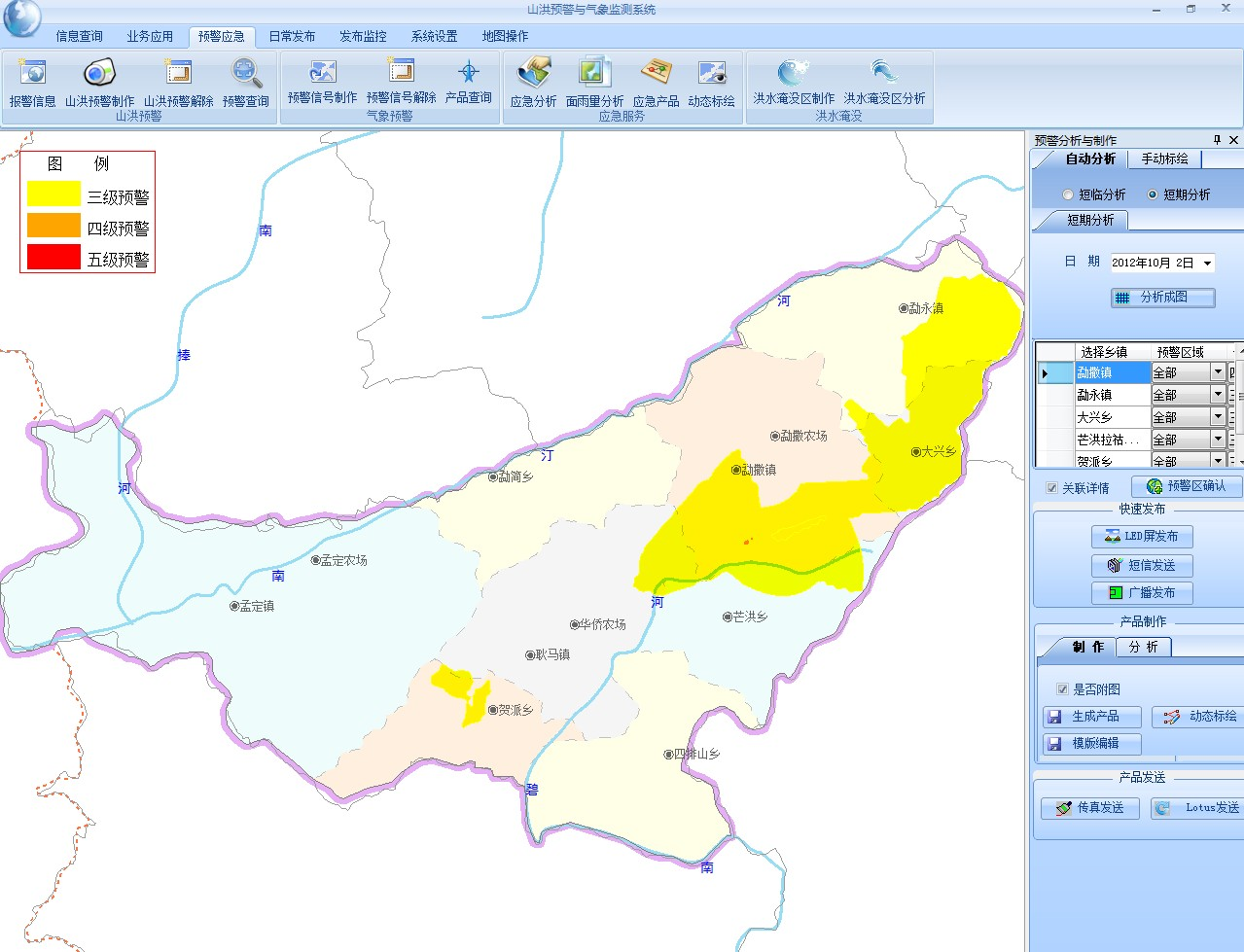 本系统立足于加强对辖区范围内降水天气实况的监测和估测,以上级指导产品为基础,综合分析本县(各种信息数据,制作精细化山洪地质灾害监测预警产品,做好本地决策服务,可将关键信息快速有效地传达至县、乡、村、学校等区域,完善信息的公众服务功能。与此同时,本系统负责实时收集辖区内的山洪地质灾害发生发展的情况,完成信息的综合分析与快速响应,开展现场应急服务,并将相关灾情信息及时上报相关业务部门和上级领导单位。